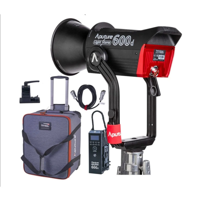 The Aputure LS 600d is a high output daylight-balanced LED designed to bridge the gap between heavy-Duty cinema lighting and portable LED technology. With a 600W COB LED, it's output is comparable to a 1200W HMI.The 600d is built for both studio and field work. It features a dual voltage battery plate that supports 14.4v , 26v and 28.v batteries (V-mount or gold mount).